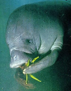Manatees are also called sea cows. But don't believe it, they aren't cows in the sea. They are just mammals with flippers that eat sea plants.
